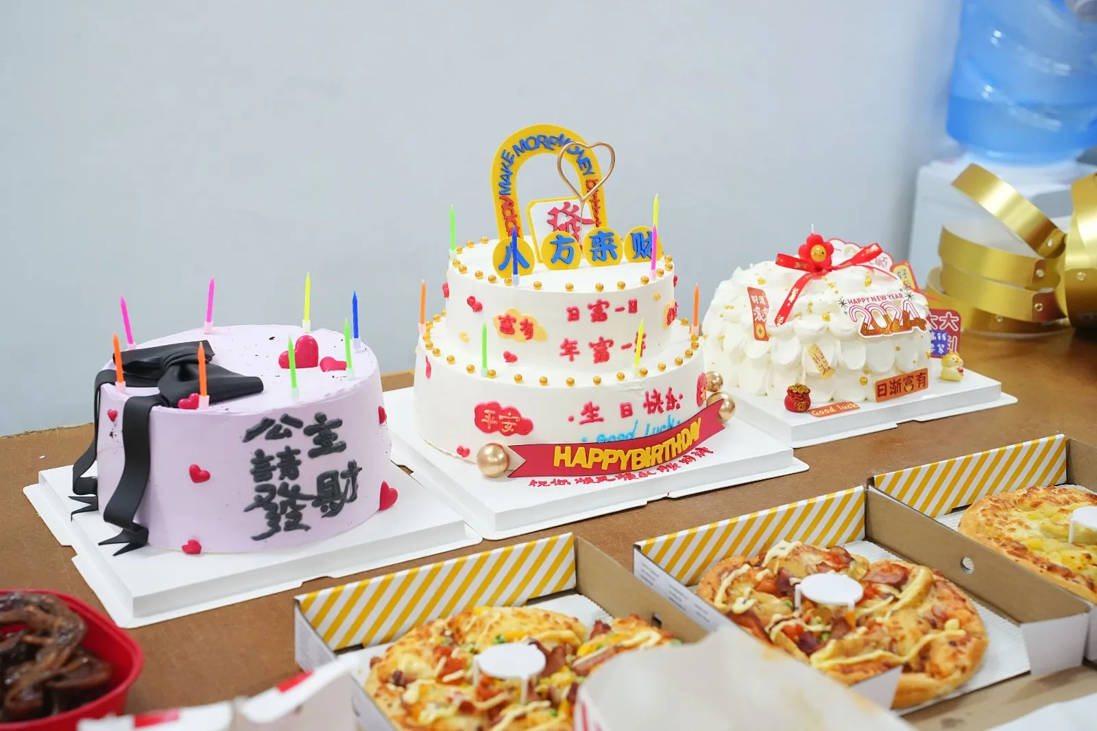 After work, we went to canteen to eat Sichuan cuisine - hot pot skewers; then the month's "birthday stars" gathered together and blew out candles and made wishes!
